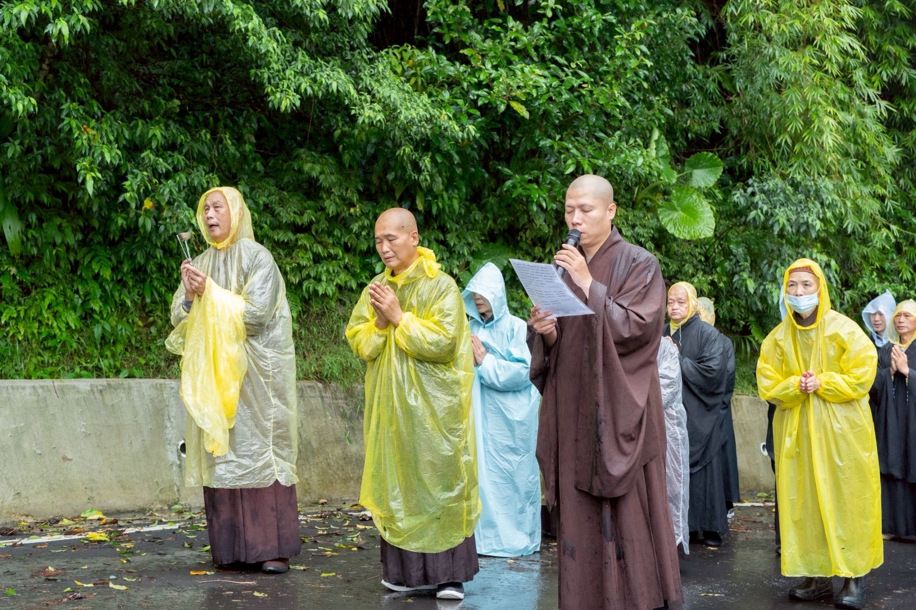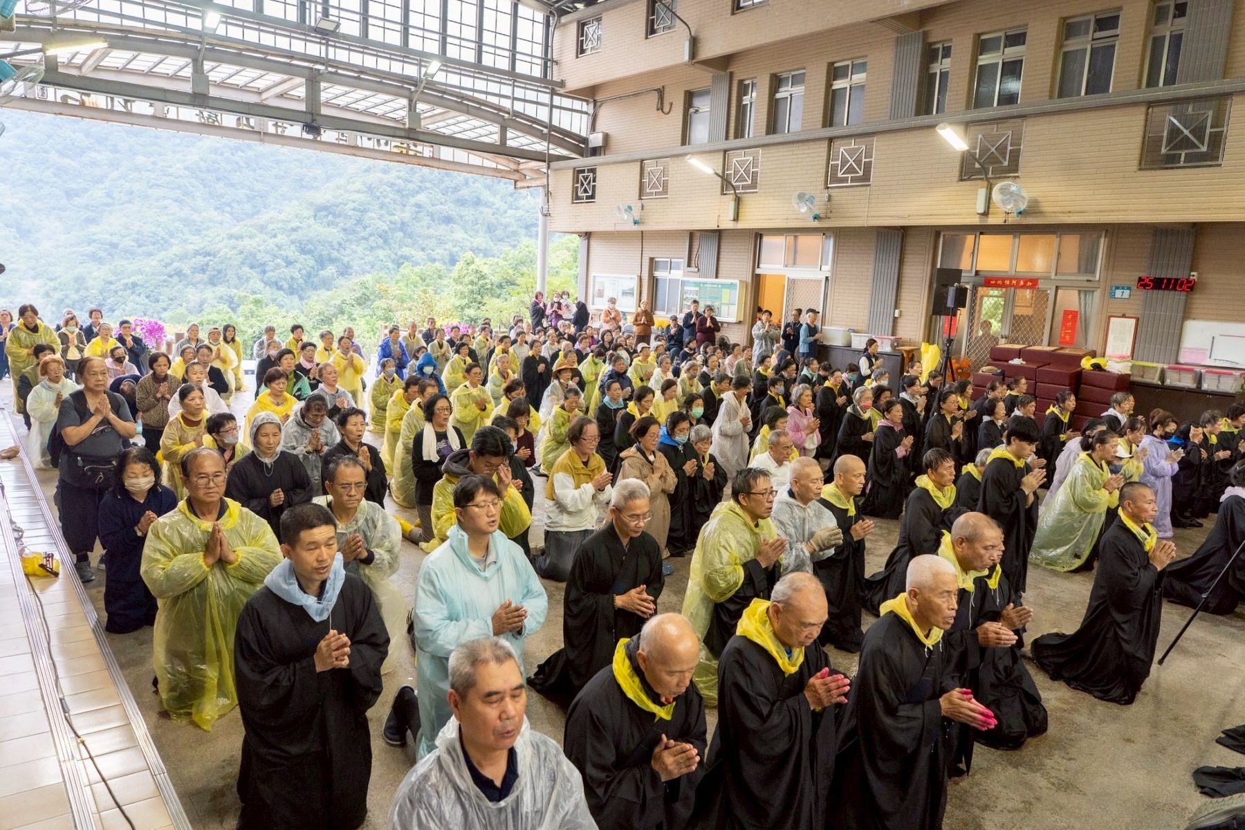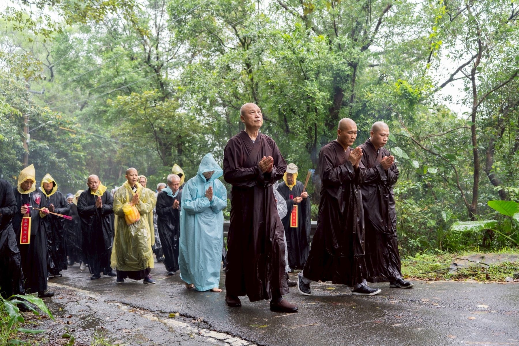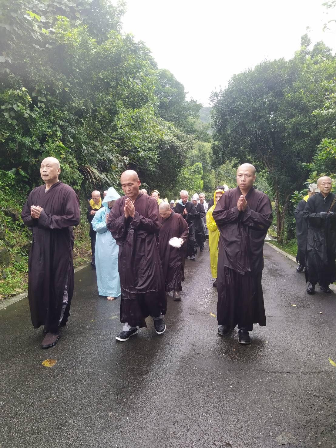清晨,細雨如絲,輕輕灑落在雙溪小築的山徑上。台北靈巖山寺雙溪小築第八屆百七護國息災法會剛剛圓滿,然而修行的腳步並未止息。翌日,四眾弟子齊聚山腳,無懼風雨,整齊列隊,準備朝山禮佛。