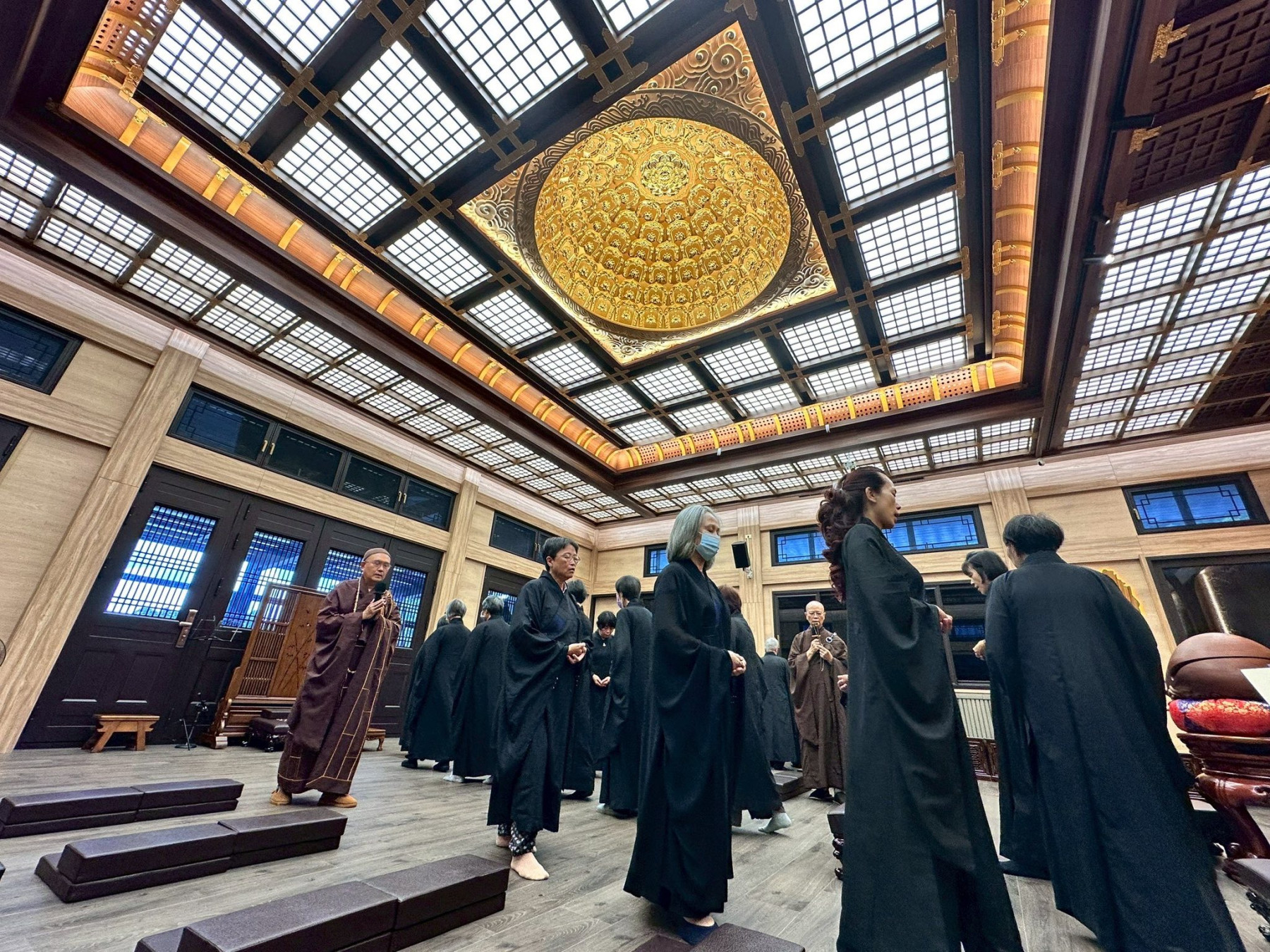 悟道大和尚,主持了灑淨、安座典禮。大眾隨著法師唱誦的音韻,虔誠誦念大悲神咒,大和尚手中的楊枝掠過琉璃淨瓶的瞬間,水珠隨柳枝輕揚於空中,灑落於信眾,一滴甘露滋潤心田,清淨身心;隨著法師的腳步,淨水浸潤之處,淨化了每一處的空間。